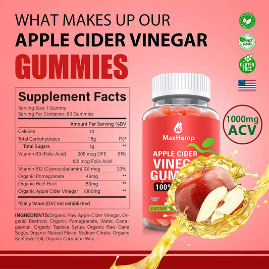 2-Pack Organic Apple Cider Vinegar Gummies ACV Gummy with Mother for Adults and Kids Supports Digestion, Detox and Cleanse Energy Boost and Gut Health Rich in Vitamin B9, B12