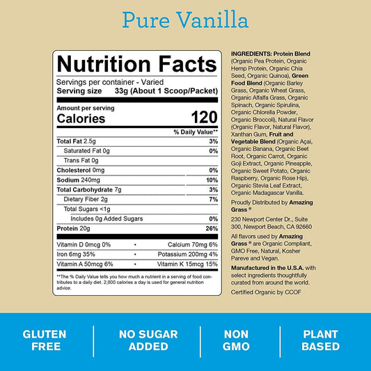 Amazing Grass PSF Powder, Pure Vanilla, 20 Servings (Old Version)