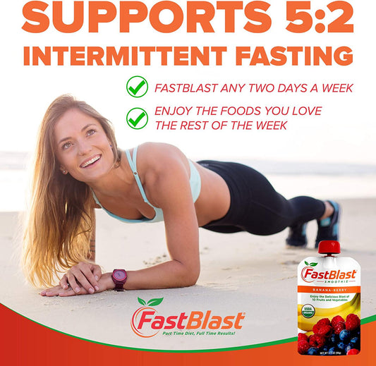 FastBlast Banana-Berry Smoothie. Supports Intermittent Fasting. Controls Appetite and Maintains Energy. USDA Certified Organic, Vegan, Non-GMO, Soy Free and No Added Sugar (12 Units)