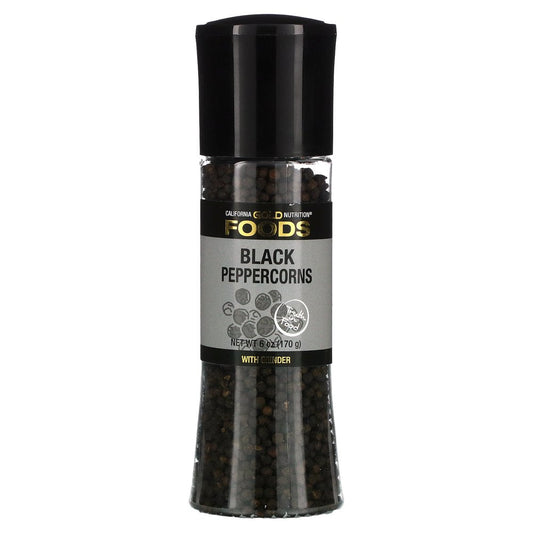 California Gold Nutrition, FOODS - Black Peppercorns Grinder, 6 Oz Pack of 3