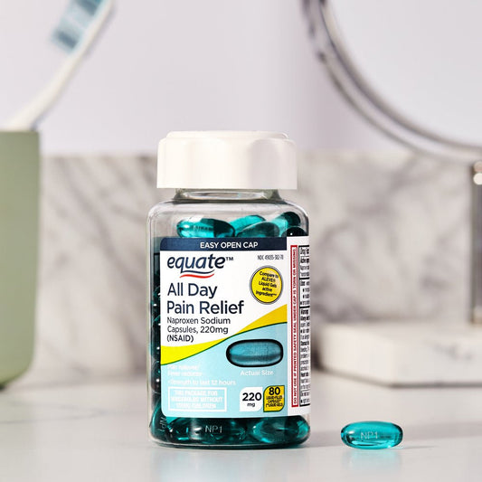 Equate Naproxen Sodium All Day Pain Relief Liquid Gels, 220 Mg, 80 Count