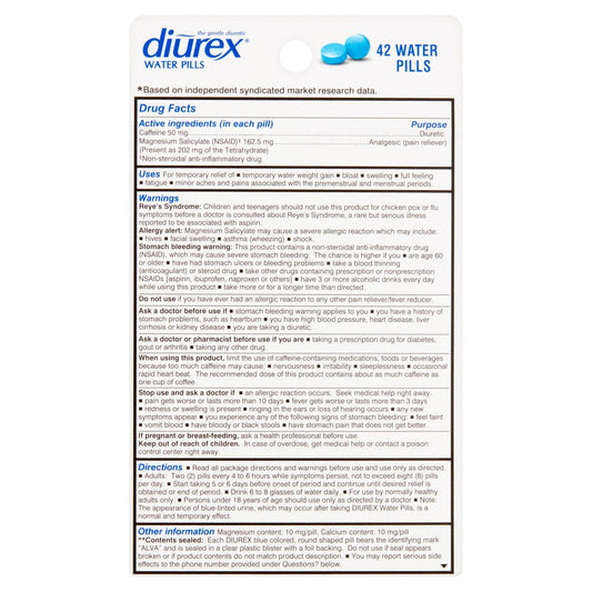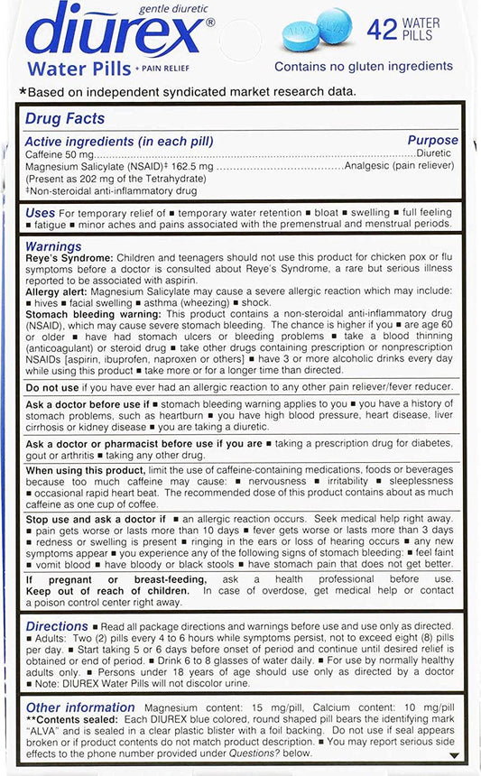 Diurex Water Pills + Pain Relief - Relieve Water Bloat, Cramps, & Fatigue - 42 Ct
