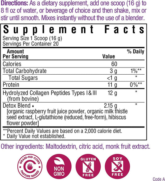 Bluebonnet Nutrition Collagen Refreshers Detox Powder, Keto and Paleo, Cleanse Support*, Soy-Free, Gluten-Free, Non-GMO, Grass-fed Cows, Pasture Raised, 11.29 oz, 20 Servings, Hibiscus Berry Flavor