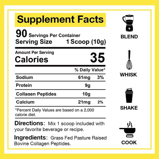 Collagen Peptides Powder, 90 Servings, Unflavored Instant Powdered, Pure Hydrolyzed Collagen Protein Powder (Type I, III) 100%Grass Fed, Paleo and Keto, Non-GMO, for Skin Hair Nail Joint, by Zammex