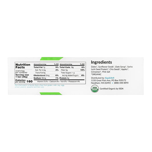 EquiLife - Whole Food Bars, Paleo and Vegan Protein Bars, Organic Nutrition Bars, 6g of Protein, Under 200 Calories, Crisp Apple Taste, Travel-Size, Gluten-Free, Soy-Free (Cinnamon Apple Crisp, 9 Count)