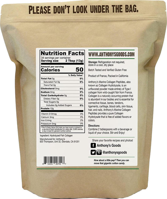 Anthony's Hydrolyzed Marine Collagen Peptides, 1Lb, Gluten Free, Paleo and Keto Friendly