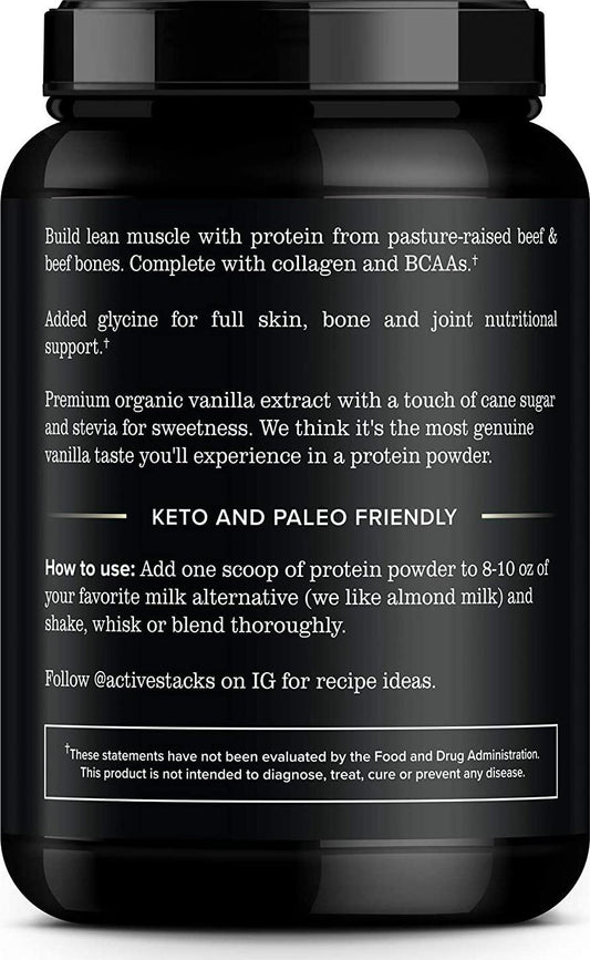 Beef Protein Powder, Vanilla - Dairy Free with Natural Collagen for Keto, Paleo, Bone Broth and Low Carb Diets, 2 Pound