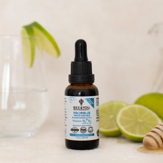 BEE and You 15% Pure Propolis Water Soluble Extract with Vitamins D3+K2 - High Potency - Natural Immune Support&Sore Throat Relief Antioxidants, Keto, Paleo, Gluten-Free, 1 Fl Oz
