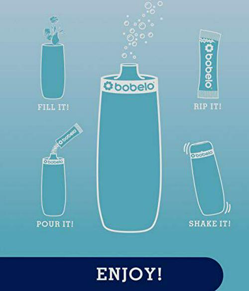 BOBELO Hydration Welcome KIT- Reusable Water Bottle, 12 Self Carbonating Hydration Drink Mixes in 4 Refreshing Flavors, Real Fruit and Botanical Extracts, Sugar Free, Keto and Paleo Friendly