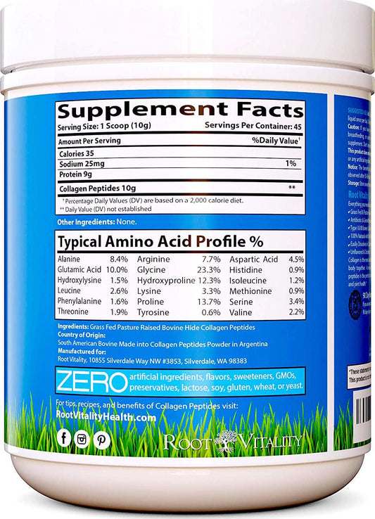 Collagen Peptides Powder - Grass Fed Pasture Raised Hydrolyzed Paleo and Keto Friendly Supplement - for Youthful Skin, Healthier Hair, Joints, Stronger Nails - GMO and Gluten Free