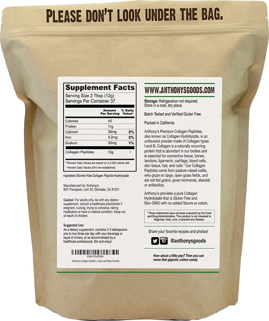 Anthony's Collagen Peptide Powder, 1Lb, Pure Hydrolyzed, Gluten Free, Keto and Paleo Friendly