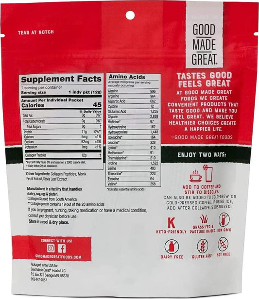 Collagen Protein Coffee Mix-in (12g) Grass-Fed Pure Protein - Keto and Paleo Friendly - NO Dairy, Whey, or Soy - Naturally Sweetened- Sugar-Free - 10 Pack