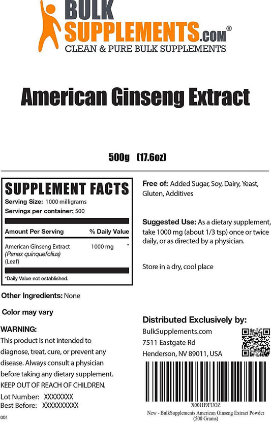 BulkSupplements.com American Ginseng Extract Powder - Panax Ginseng - Ginseng Supplement - Panax Ginseng Extract - Ginseng Herbal Supplements - Ginseng Powder (500 Grams - 1.1 lbs)
