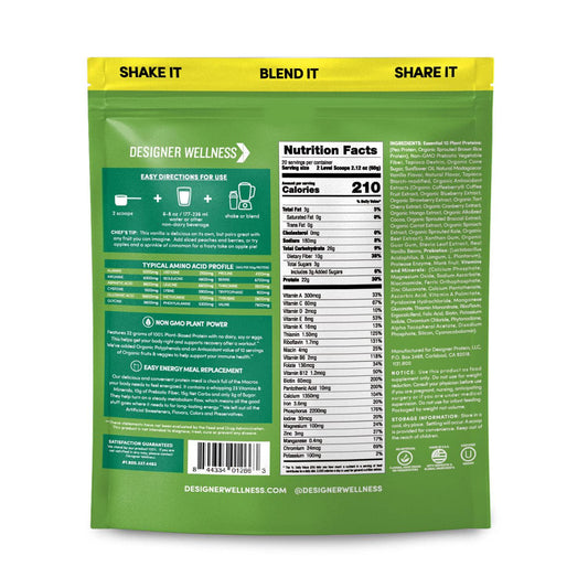 Designer Wellness, Designer Plant Meal Replacement, Pea Protein and Organic Sprouted Rice Protein Powder with Vitamins, Minerals, Healthy Fats, and Antioxidants, Madagascar Vanilla, 2.64 Pounds
