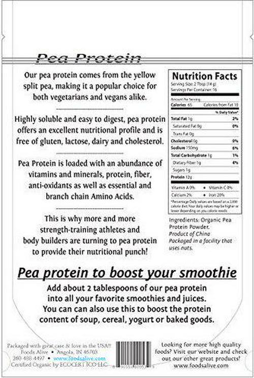 Foods Alive Pea Protein Powder, 100% Yellow Pea Protein, Unflavored, Vegan, with No Gluten, Lactose, Dairy or Cholesterol, This Pea Protein Isolate is Soluble and Easy to Digest, 8oz (Single Pack)