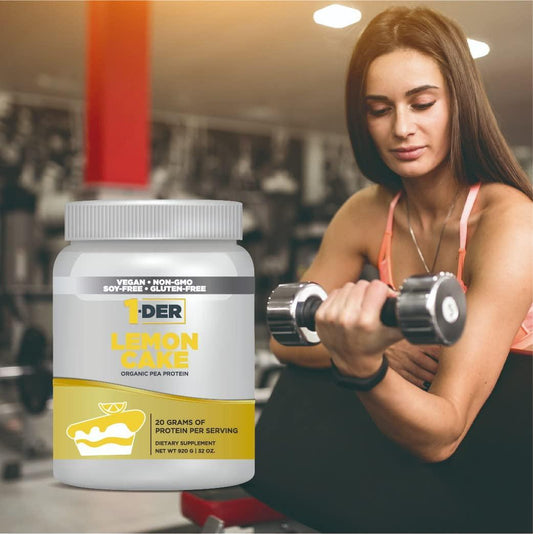 1-DER Pea Protein Powder Plant-Based Dietary Supplement No Sugar Added, Soy-Free, Non-GMO, Gluten-Free, Vegan Post-Workout, Speeds Muscle Recovery Lemon Cake 32 Oz - 2 LB