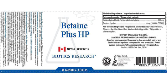 BIOTICS Research Betaine Plus HP, White, 90 Count (Pack of 1), 1266