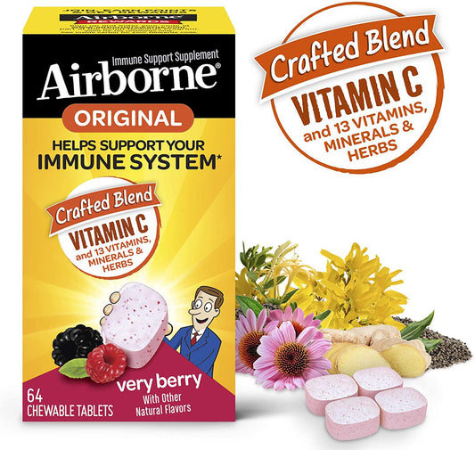 Airborne Chewable Immune Support Berry Tablets 64 ea (Pack of 3)