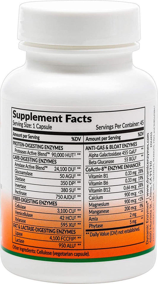 Eat E-Z Ultra (45 Vegan Capsules) Extra Strength Complete Digestive Enzyme Supplement; Anti-Bloating; Gut Health.
