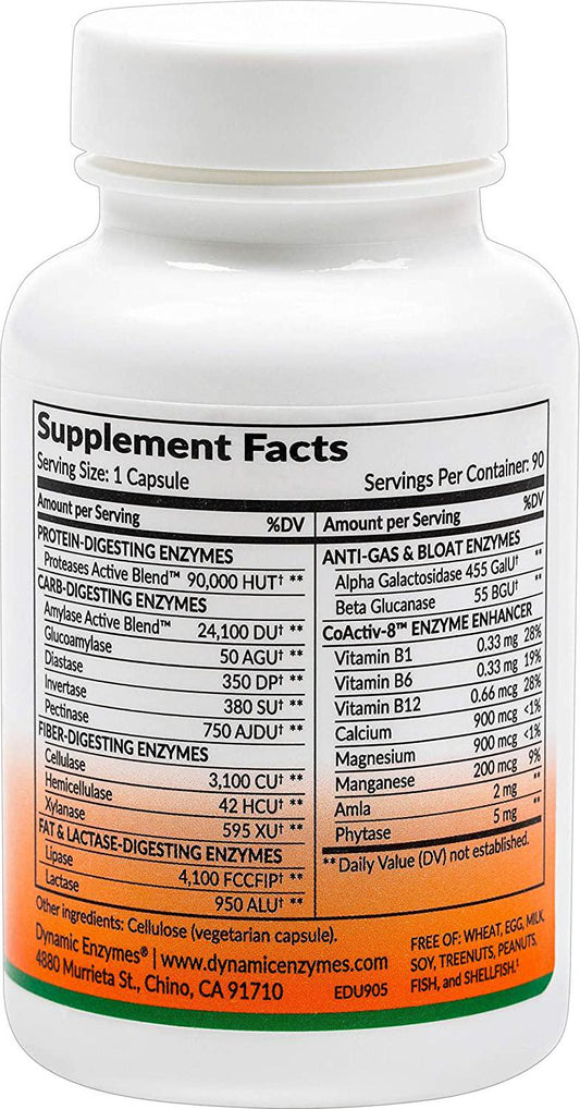Eat E-Z Ultra (90 Vegan Capsules) Extra Strength Complete Digestive Enzyme Supplement; Anti-Bloating; Gut Health.