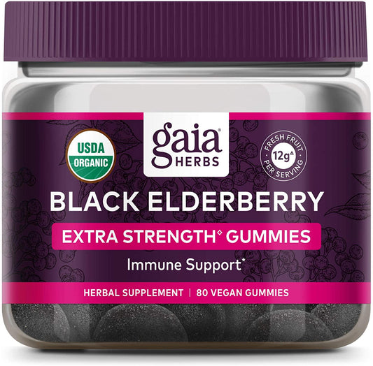 GAIA HERBS Organic Extra Strength Elderberry Gummies, 80 CT
