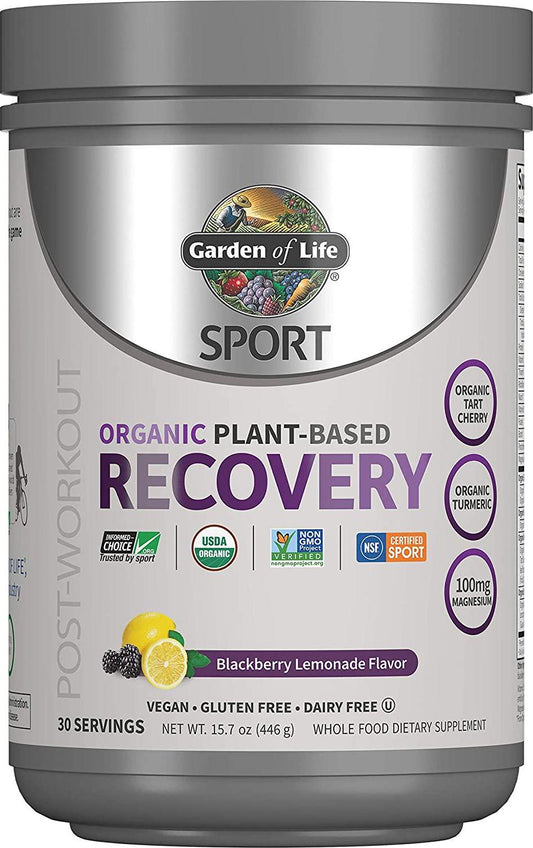 Garden of Life Sport Vegan Organic Plant Based Post Workout Muscle Recovery Powder for Men and Women - BlackBerry Lemonade 30 Servings, 100mg Magnesium, Antioxidants, Supplements, 15.7 Oz