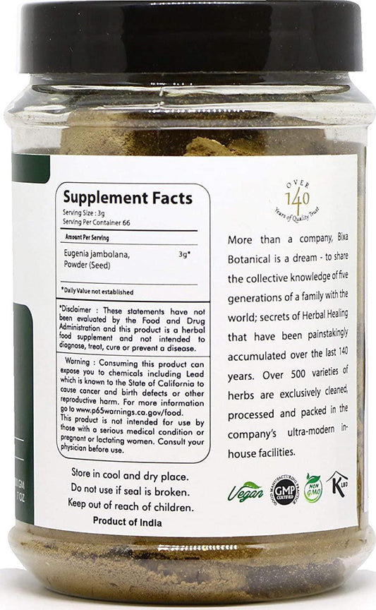 bixa BOTANICAL Jamun Powder (Black Plum) (Eugenia Jambolana) 200G (7 Oz) | Herbal Supplement For Normal Blood Sugar Level, Supports Proper Digestion