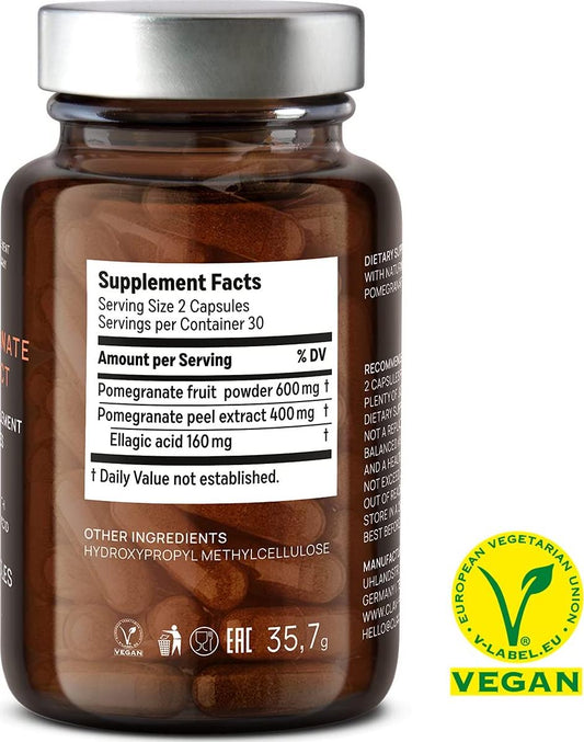 1000mg Pomegranate Extract per Daily Dose | Rich in Polyphenols and 40% Ellagic Acid | 60 Capsules Vegan | Made in Germany