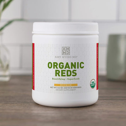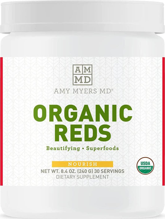 Dr Amy Myers Organic Reds Superfood Powder - Best Super Reds Powder with +13 USDA Certified Organic Ingredients - Contains Organic Beet Root Powder, Pomegranate, Raspberry + More - 30 Servings