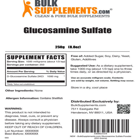 Bulksupplements.Com Glucosamine Sulfate Powder, 1000Mg - Promotes Bone & Joint Health (250G - 250 Servings)