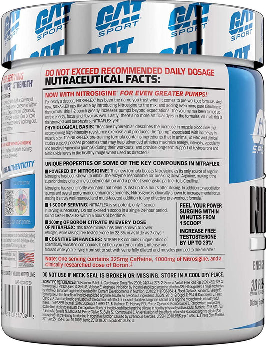 GAT Clinically Tested Nitraflex, Testosterone Enhancing Pre Workout, Blue Raspberry