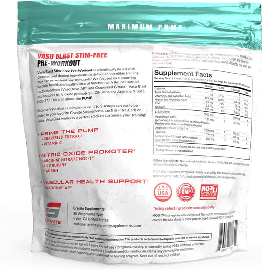 Granite Vaso Blast Advanced 'Stim-Free' Pre-Workout (Cherry Lime) | Supports Vasodialation, NO Conversion, and ACE Inhibition for Max Pump with Grapeseed Extract, Arginine Nitrite, and VasoDrive-AP