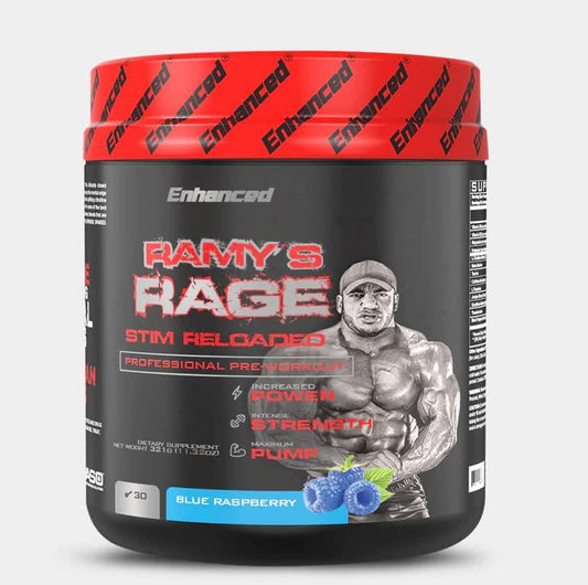 Enhanced Labs - Mr. Olympia 2020 Big Ramy s Rage STIM - Stimulating Pre Workout for Improved Focus, Intense Energy and Increased Power - 30 Servings - Blue Raspberry
