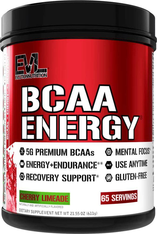 Evlution Nutrition BCAA Energy - Essential BCAA Amino Acids, Vitamin C + Natural Energizers for Performance, Immune Support, Muscle Building, Recovery, B Vitamins, Pre Workout, 65 Serv, Cherry Limeade