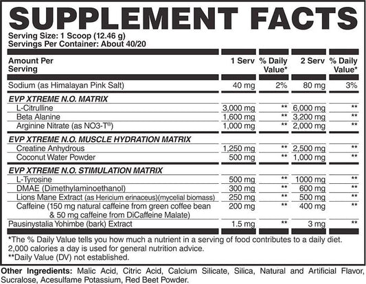 Evogen Nutrition EVP Xtreme NO | Arginine Nitrate, Beta-Alanine, Citrulline Pre-Workout, Nitric Oxide, Pumps | 40 Servings | Tropic Thunder