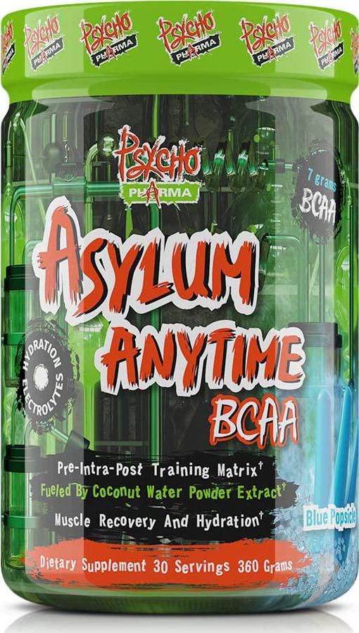 Fuel The Muscles and Protein Synthesis. Psycho Pharma s Asylum Anytime BCAAs is a Complex pre/Intra/Post Workout Muscle Building Supplement That Keeps You Psycho Every Workout (Blue Popsicle)