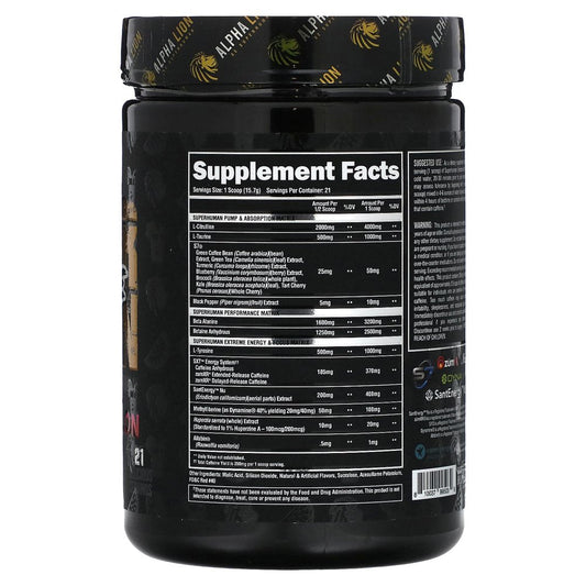 ALPHA LION Superhuman Extreme, Extreme Energy Pre-Workout Formula, Intense, Sustained Energy and Focus, Elevated Nitric Oxide, Maximum Pumps & Nutrient Delivery (21 Servings, Slaughtermelon)