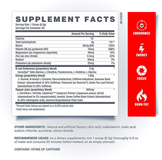 Betancourt Nutrition B-NOX Ripped Pre-Workout Formula, Keto-Friendly, Endurance Builder, Powder, 287g (30 Servings), Tropical Paradise
