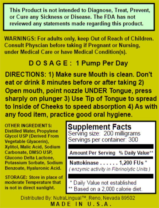 Anytime Nattokinase-High Potency-1,200 FUs (Equivalent to 4,000 FUs Oral Dose), Premium 300 DAY Sublingual Liquid Supplement --TAKE ANYTIME, NO FASTING OR EMPTY STOMACH REQUIRED!!
