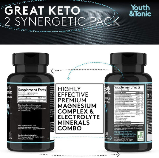 2pk| High Absorption Magnesium Complex + Electrolytes Pills - Mag Minerals Vitamins | Premium Magnesium Citrate Oxide Supplement for Leg Cramps Sore Muscle Bone Support Endurance Recovery Nerve Health