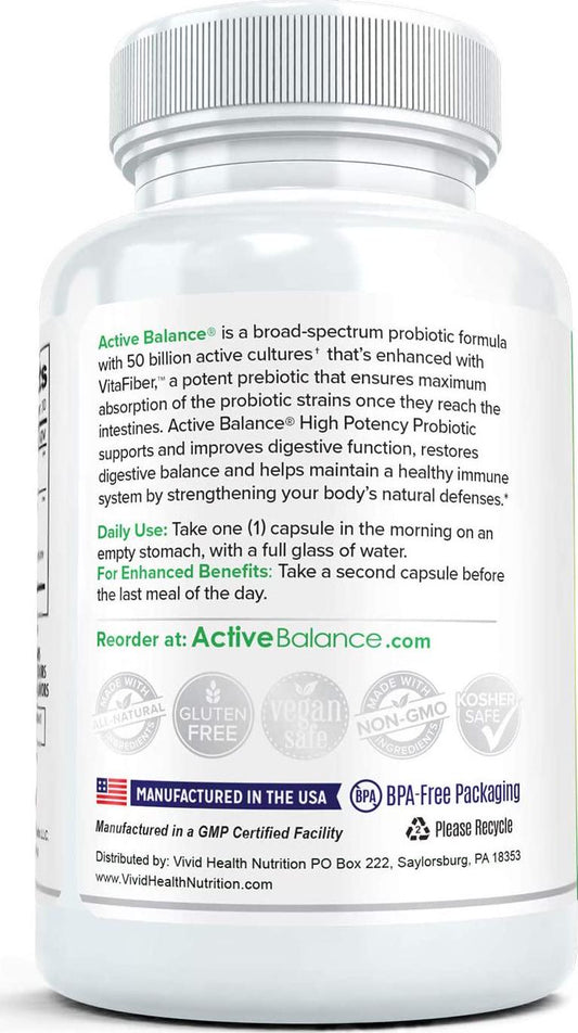 Active Balance Probiotic 50 Billion CFUs: Pharmacist Recommended Probiotics for Women and Men | Shelf Stable Acidophilus Supplement | Ease Bloating, Supports Digestive, Colon and Gut Health, 30 Caps