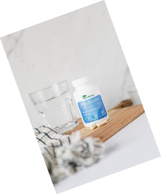 BlueBiotics Ultimate Care - Probiotic 61 Billion CFU - Shelf Stable, Guaranteed Potency Until Expiration, No Refrigeration - Gluten Dairy Free for Women Men - 60 Vegetable Capsules