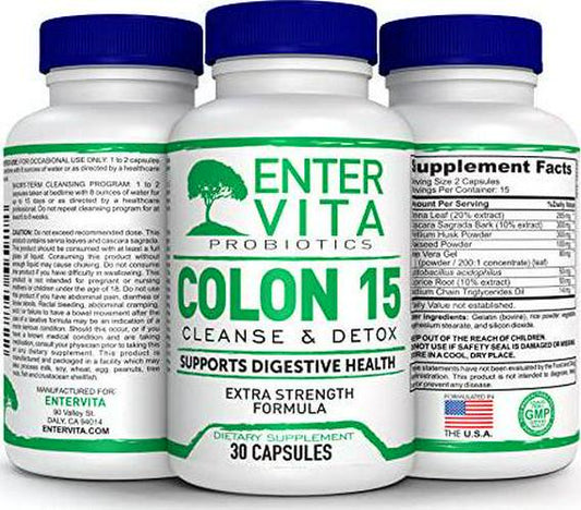 Entervita Colon 15 Day Fast-Easy Extra-Strength Cleanse and Detox with Natural Laxatives and Probiotic 30 aps