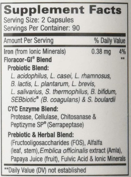 Floracor-GI Candida Cleanse, Probiotic and Enzyme Support Formula 180 Capsules