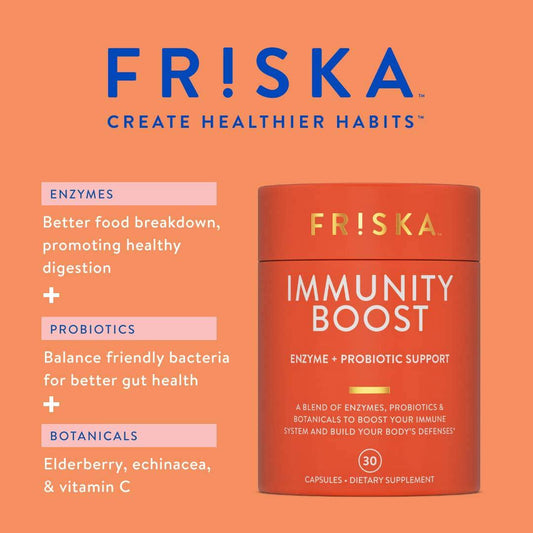 Friska Immunity Boost, Natural Digestive Enzyme and Probiotic, Promotes Better Digestion, Made in The USA, 30 Vegetarian Capsules