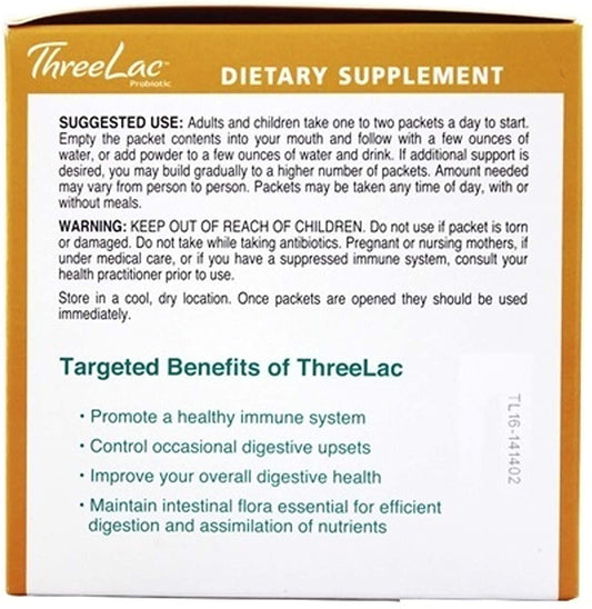 Global Health Trax Threelac Probiotic Lemon - 2 Boxes (60 Packets Each). Great Lemon-Flavored Dietary Supplement