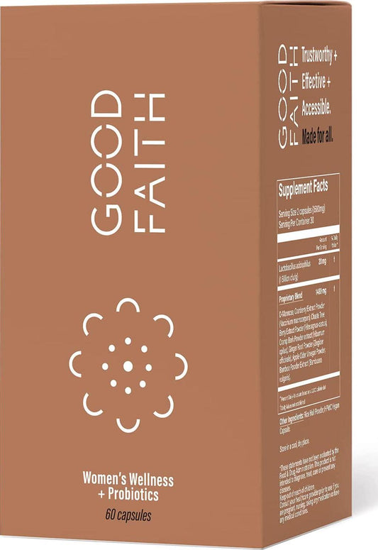 Good Faith - Women’s Wellness with Probiotics - 60 Capsules - Vaginal Health Probiotic - Promotes a Healthy Gut - Balances Vaginal Flora - Vegan