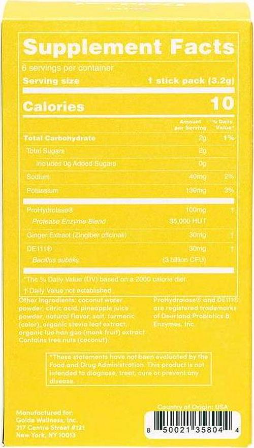 Golde Debloat Ade Pineapple Dietary Supplements Box Contains 6 Single-Serving Stick Packs Made with Real Pineapple and Ginger, and Boosted with probiotics and Digestive enzymes
