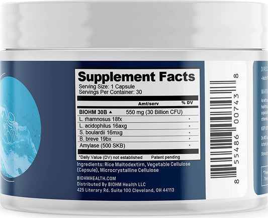 BIOHM Probiotics for Women and Men Digestive Enzyme Support, Non-GMO, Vegetarian Friendly, 30 Count