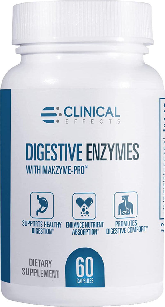 Clinical Effects Digestive Enzymes with Makzyme-Pro - Gut Health Enzyme and Probiotic Supplement to Support Digestion, Nutrient Absorption, Digestive Comfort - 60 Vegan Supplement Capsules - USA Made